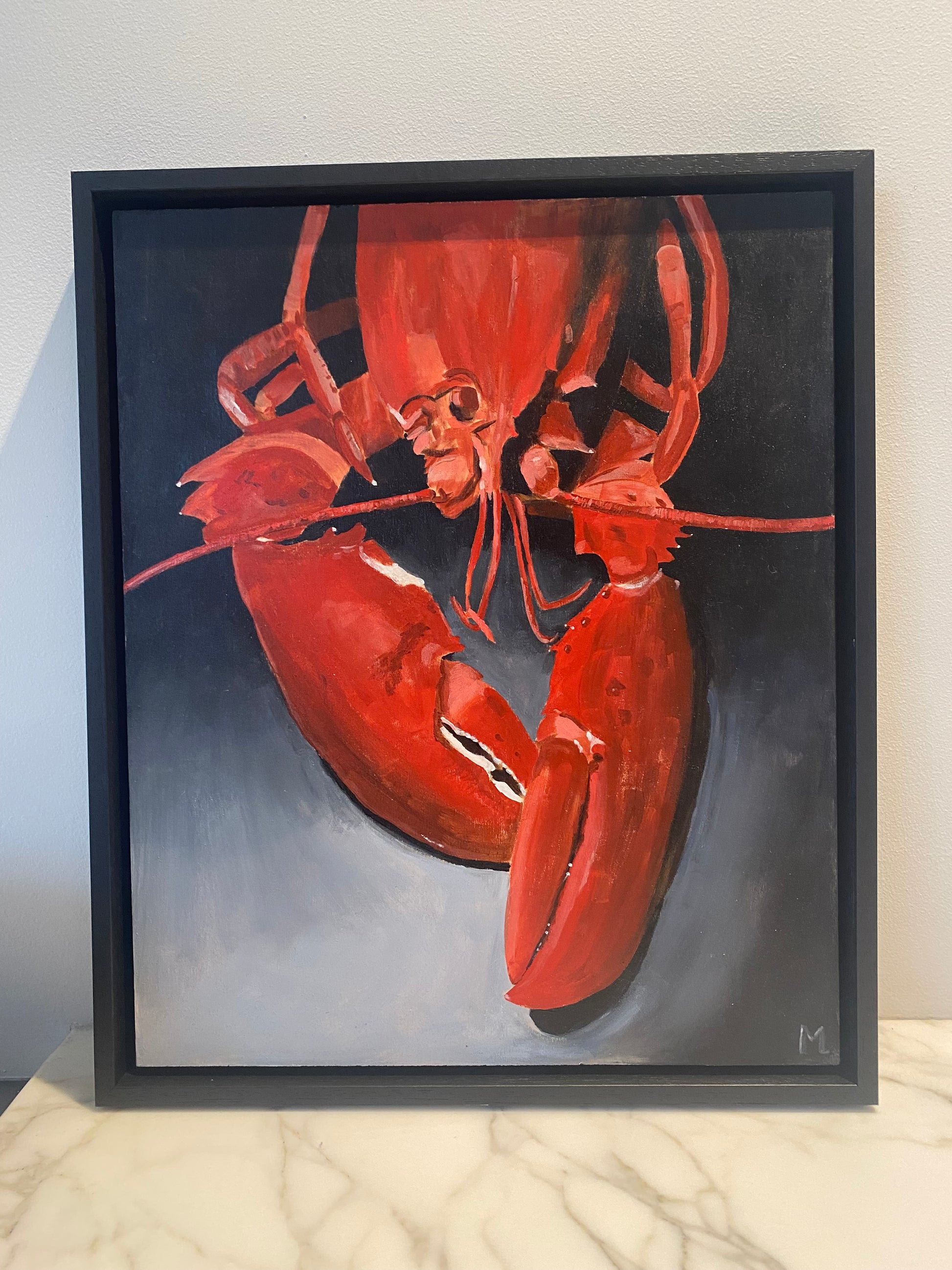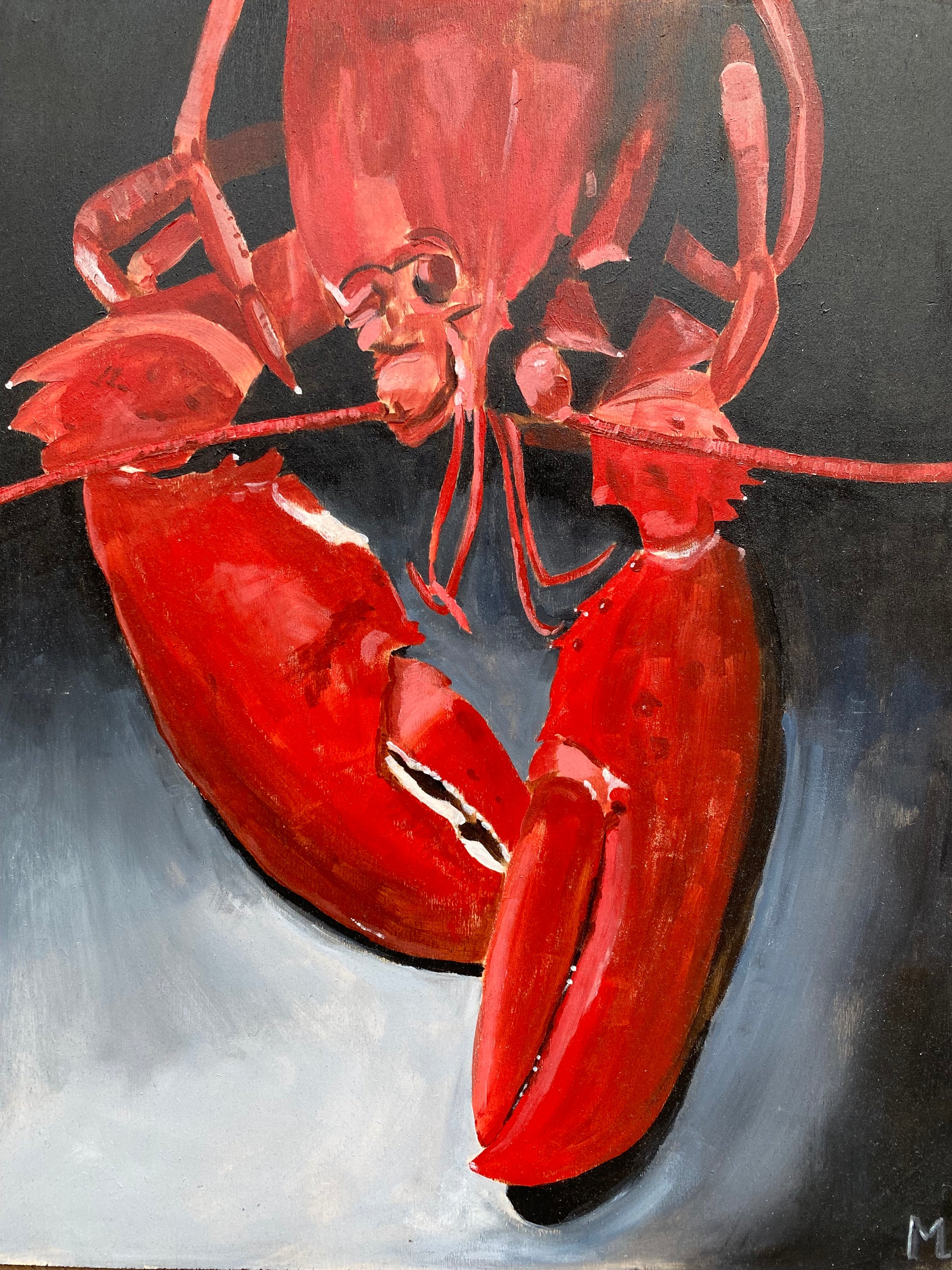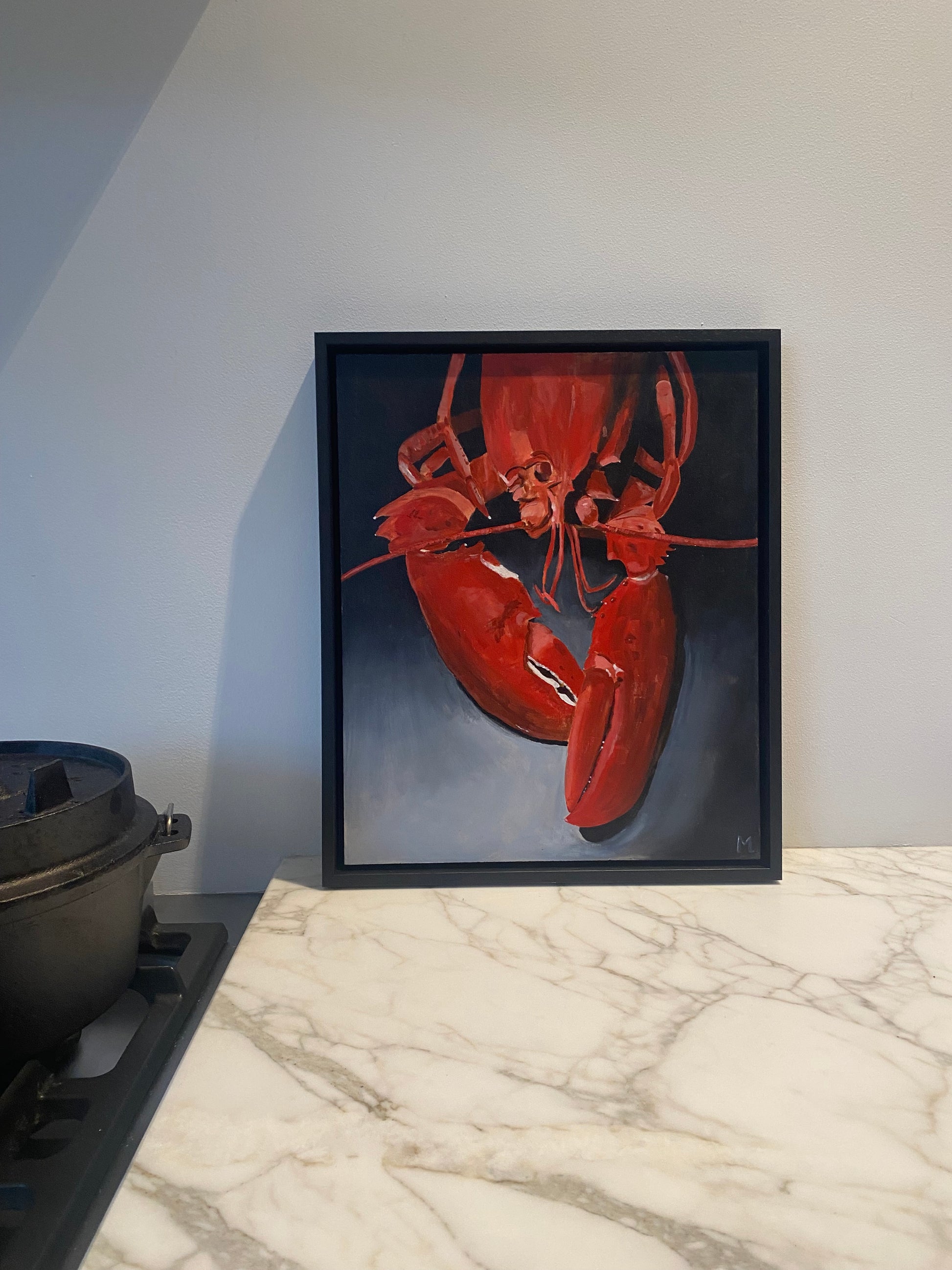 De kreeft pak ik in een sjaal of doek in, want dat ziet er mooi uit en scheelt pakpapier. Ook doe ik er een plakhaakje bij om eventueel mee op te hangen.