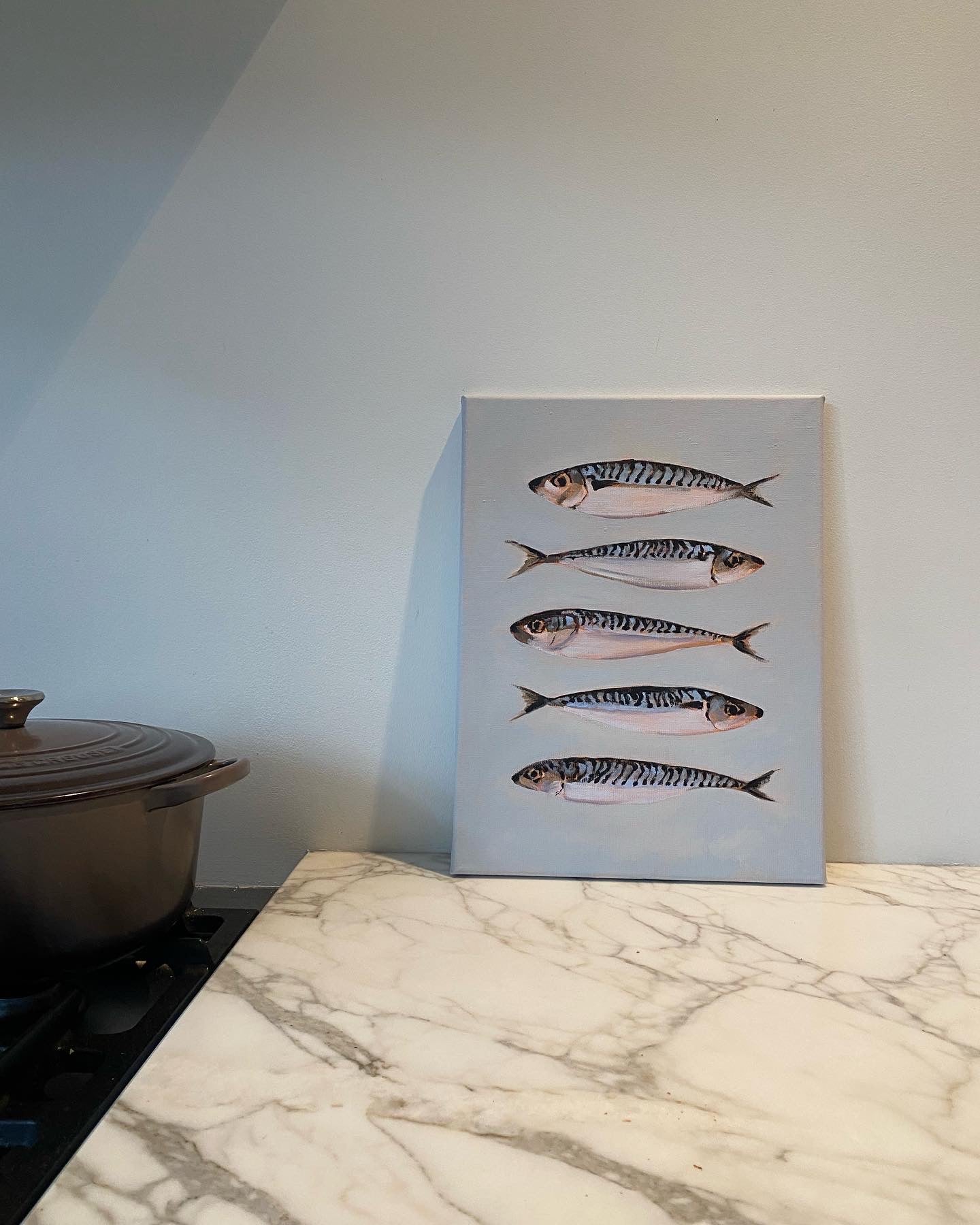 De visjes pak ik in een sjaal of doek in, want dat ziet er mooi uit en scheelt pakpapier. De foto is een voorbeeld, prints verschillen.